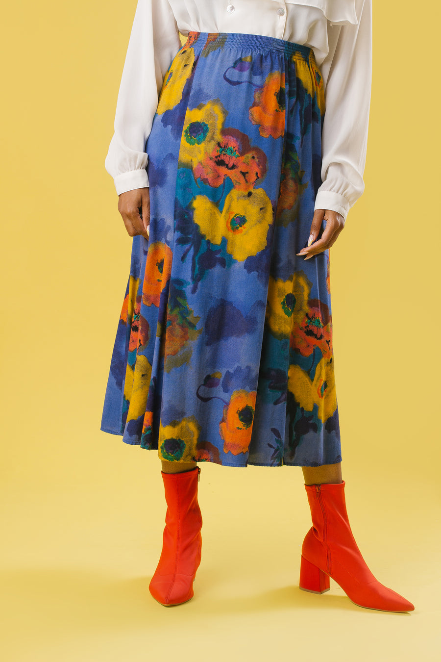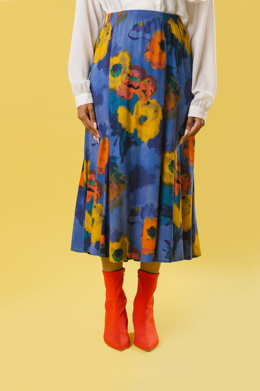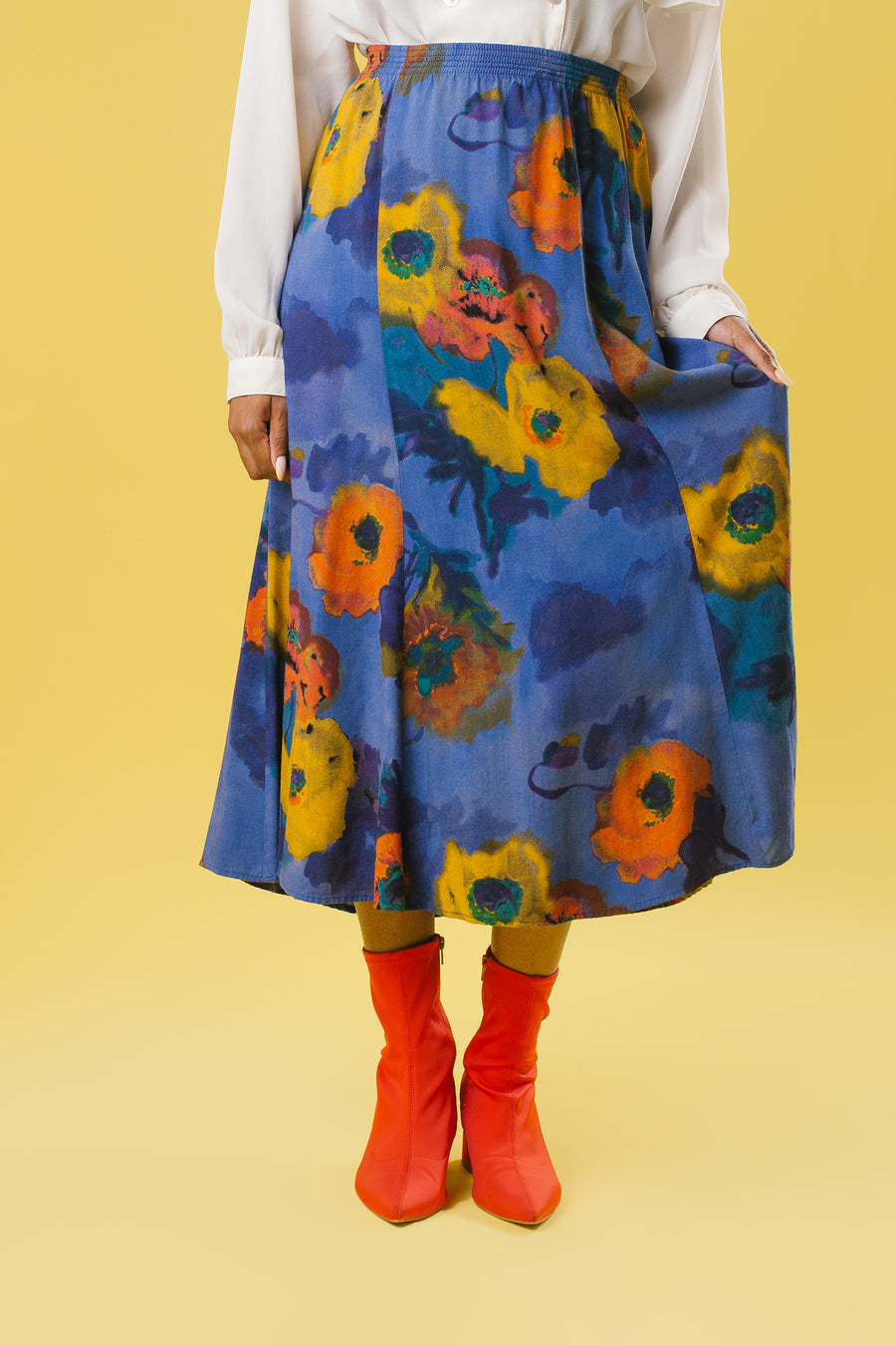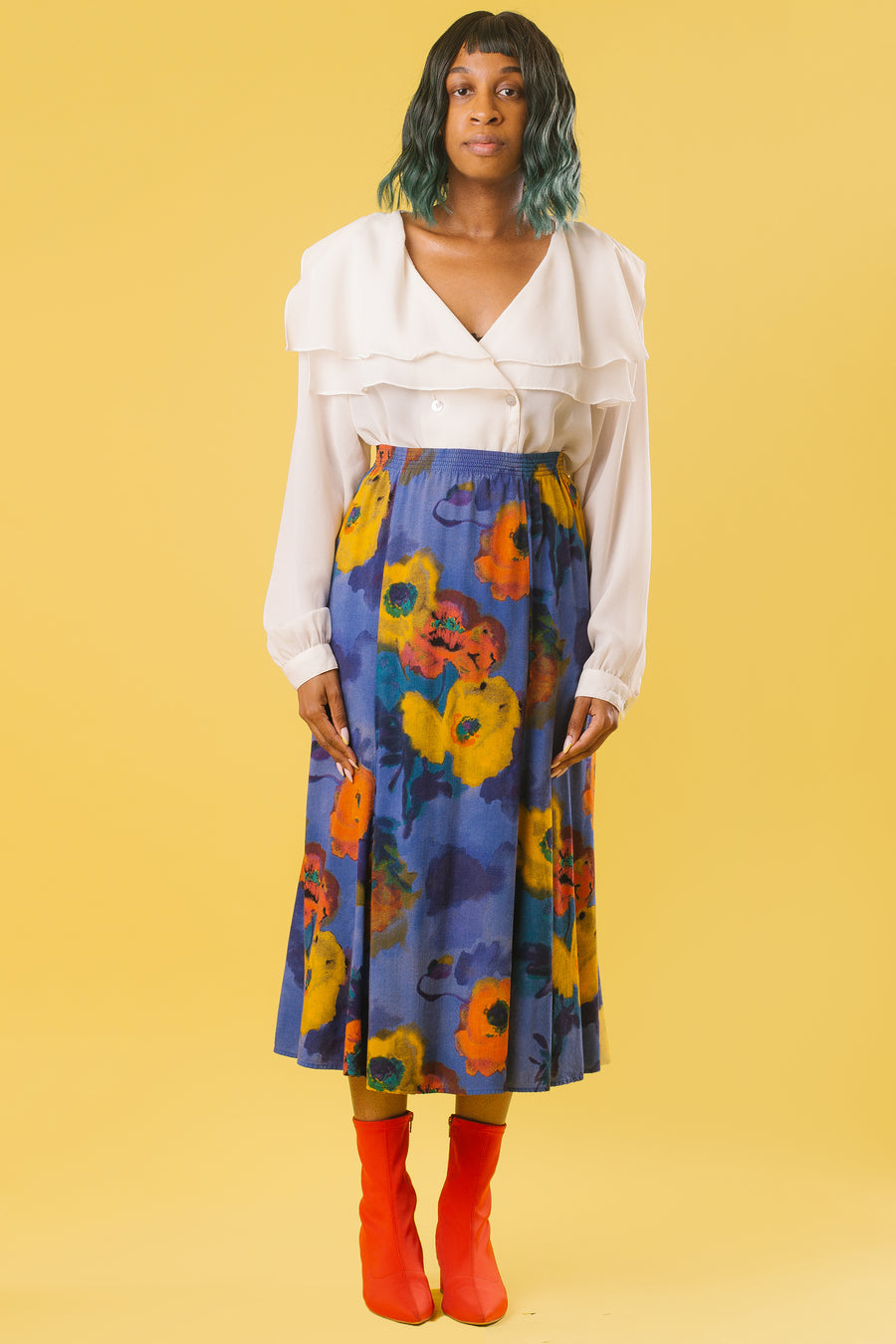 This vintage 90's floral highwaist skirt is quirky and cute! Pair with one of our blouses for a feminine look!
