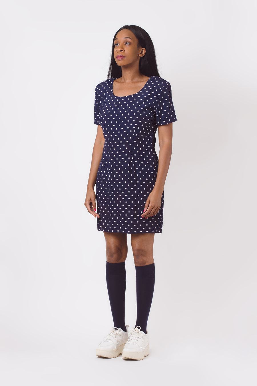 This vintage 90's My Michelle polkadot dress is ready for your summer wardrobe! The super cute dress as built-in shoulder pads and zips-up in the back.