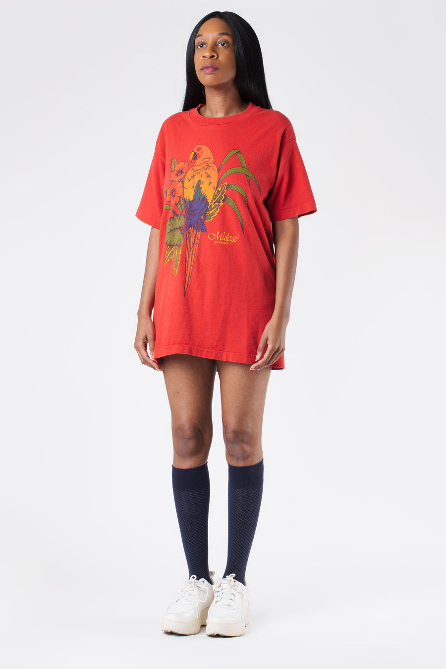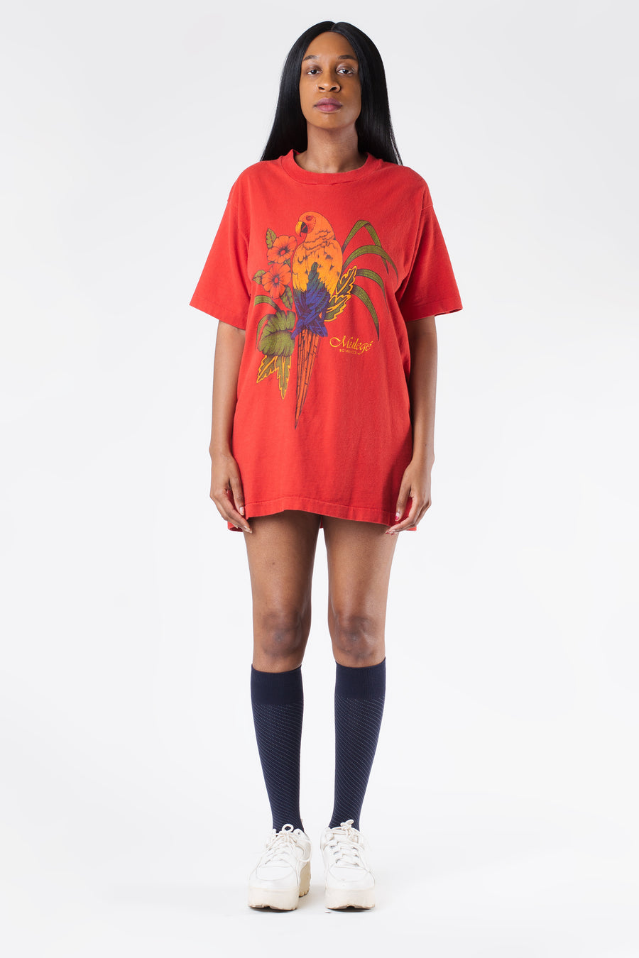 This vintage 90's Mexico parrot t-shirt is super cute! Pair it with a pair of jeans or shorts for a cute and casual look, or be bold and wear it as a dress!
