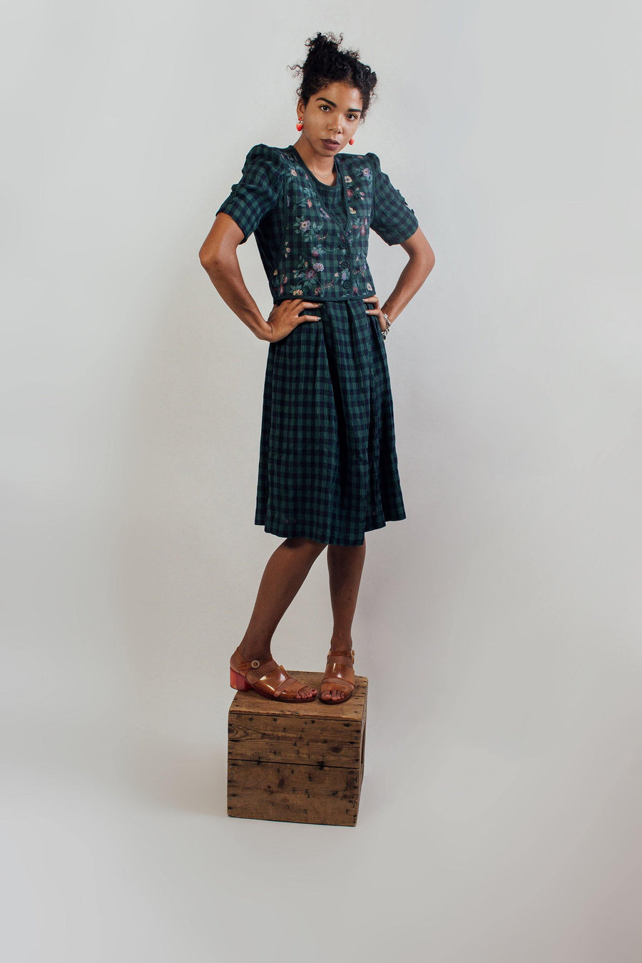 Vintage Green Prairie Dress | S