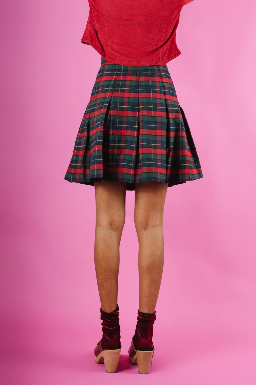 Vintage 90's plaid tennis skirt that buttons and zips-up on the side. It features a high waist and with it's length and polyester fabric, this skirt is perfect for the summer or winter!