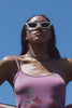 White cat eye sunglasses with black tinted lenses. Serving you 90's vibes.